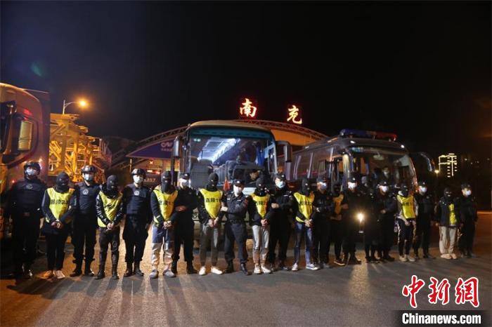 南充嘉陵警方,押解犯罪嫌疑人回南充。 南充嘉陵警方供图