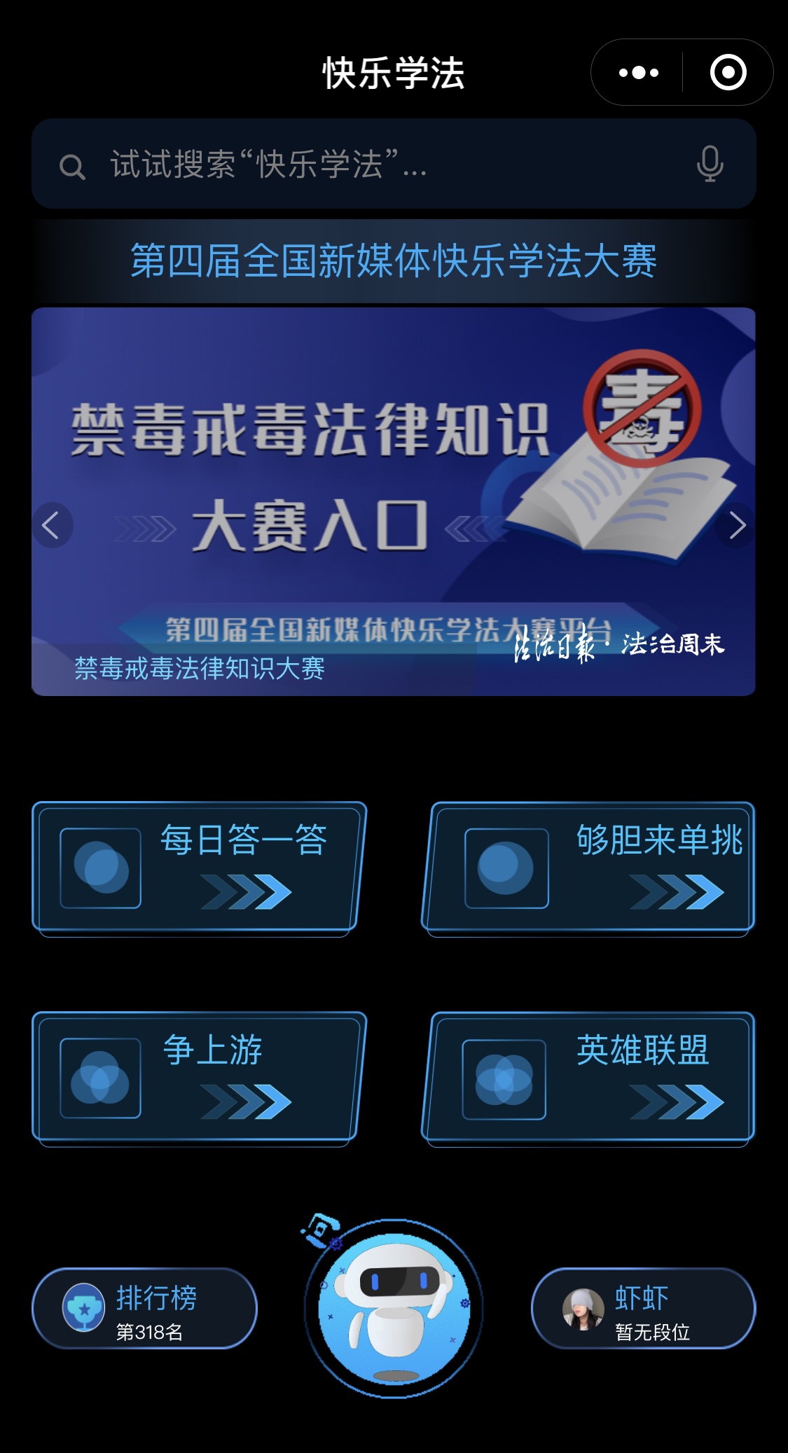 Step2:点击首页底部导航栏内的“禁毒戒毒”或“知识大赛”按钮,