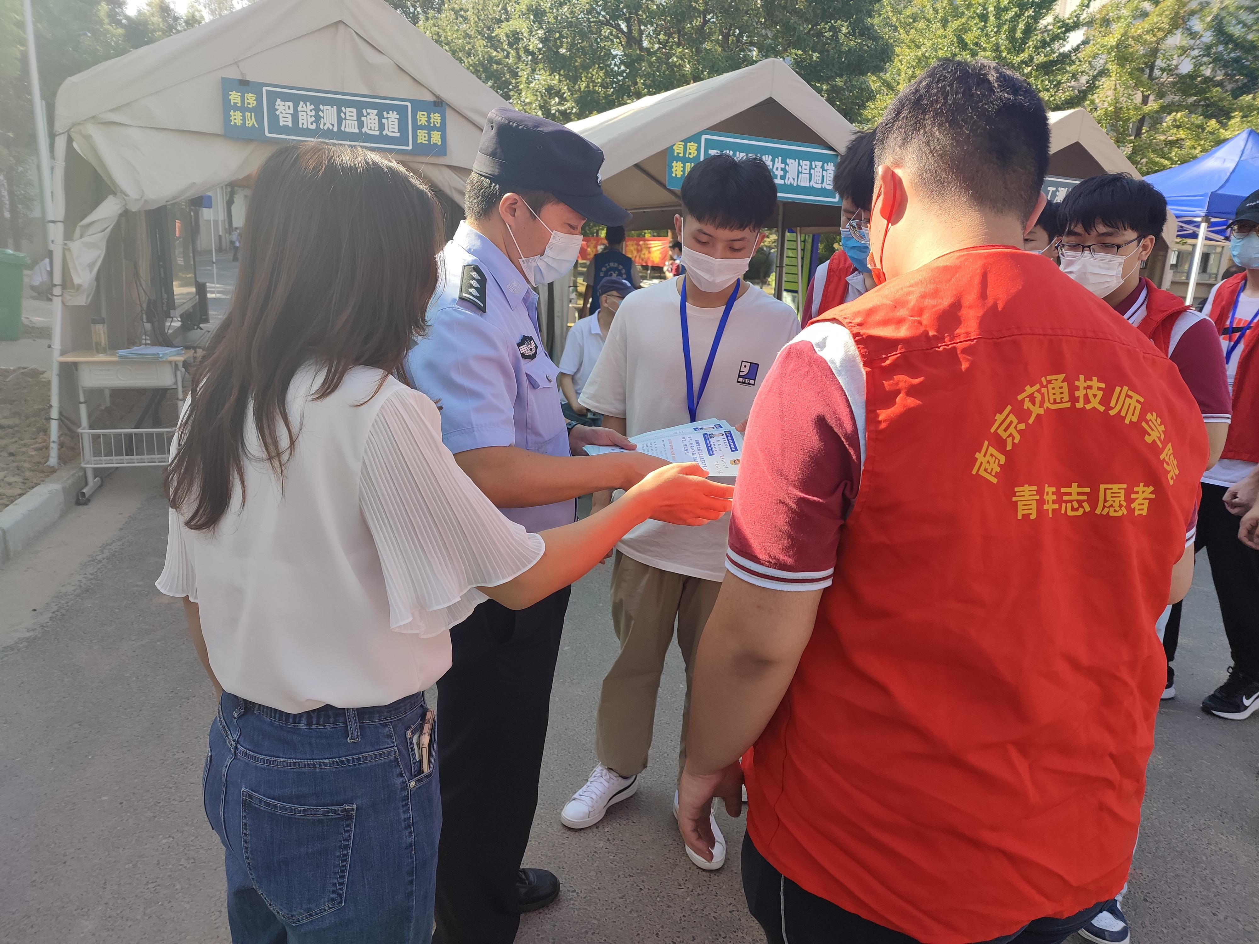 近日,麒麟铺责任区社区民警程辉前往辖区南京交通技师学院开展开学安保工作,迎接新生的到来,配合校方维持现场秩序,同时还担负着一项重要任务,向新生宣传反电诈知识。