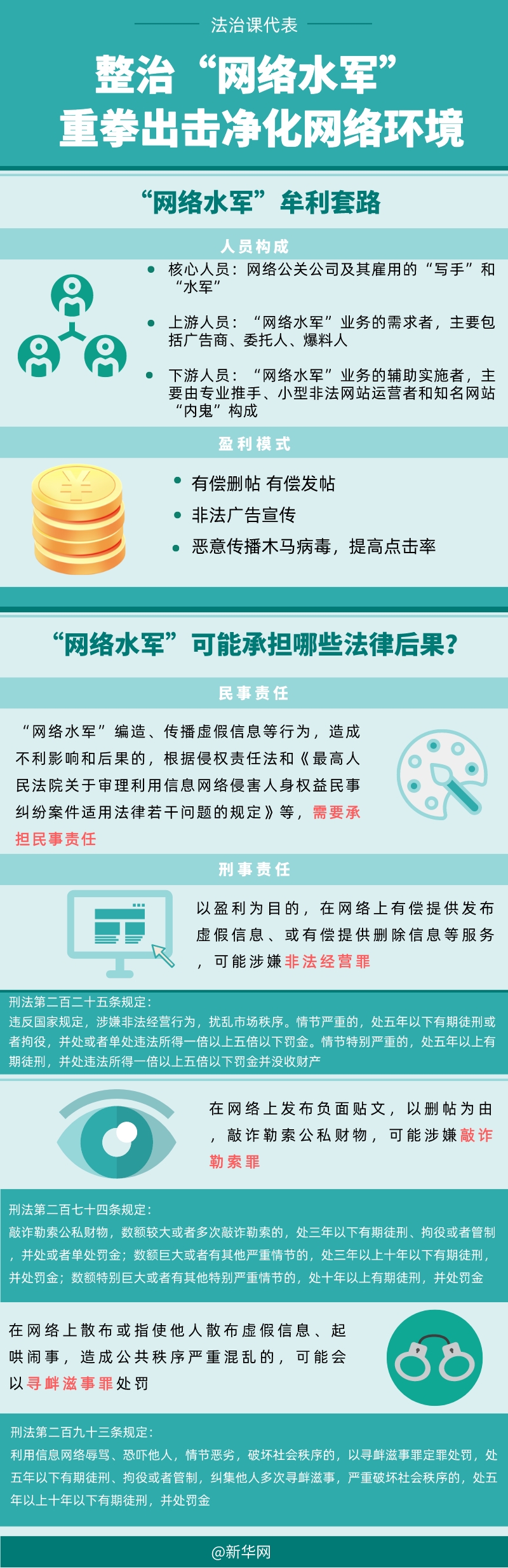 6月27日,公安部网安局在全国范围内启动为期6个月的依法打击整治“网络水军”专项工作。“网络水军”的牟利套路有哪些?可能承担哪些法律后果?一图带你了解一下!
