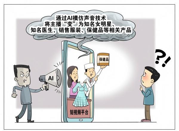 一些商家在短视频平台带货时,通过AI模仿声音技术将主播“变”为知名女明星、知名医生,销售服装、保健品等相关产品,对消费者造成了严重误导。国家传染病医学中心主任、复旦大学附属华山医院感染科主任张文宏接受媒体采访时表示,通过语音合成来模仿他的声音进行直播带货,这样的账号“不止一个,且一直在变”,他多次向平台投诉但屡禁不绝。