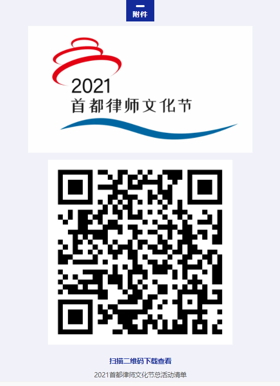 本次文化节的总活动清单将在首都律师网上发布(见附件),清单中有具体的活动名称、活动时间、活动地点和承办单位等详细信息,方便大家了解。所有活动的报名通知都将陆续通过官网发布。考虑到防疫、安全等要求,文化节的总活动清单仅做参考,具体时间、地点等内容还请以相应活动的具体通知为准。