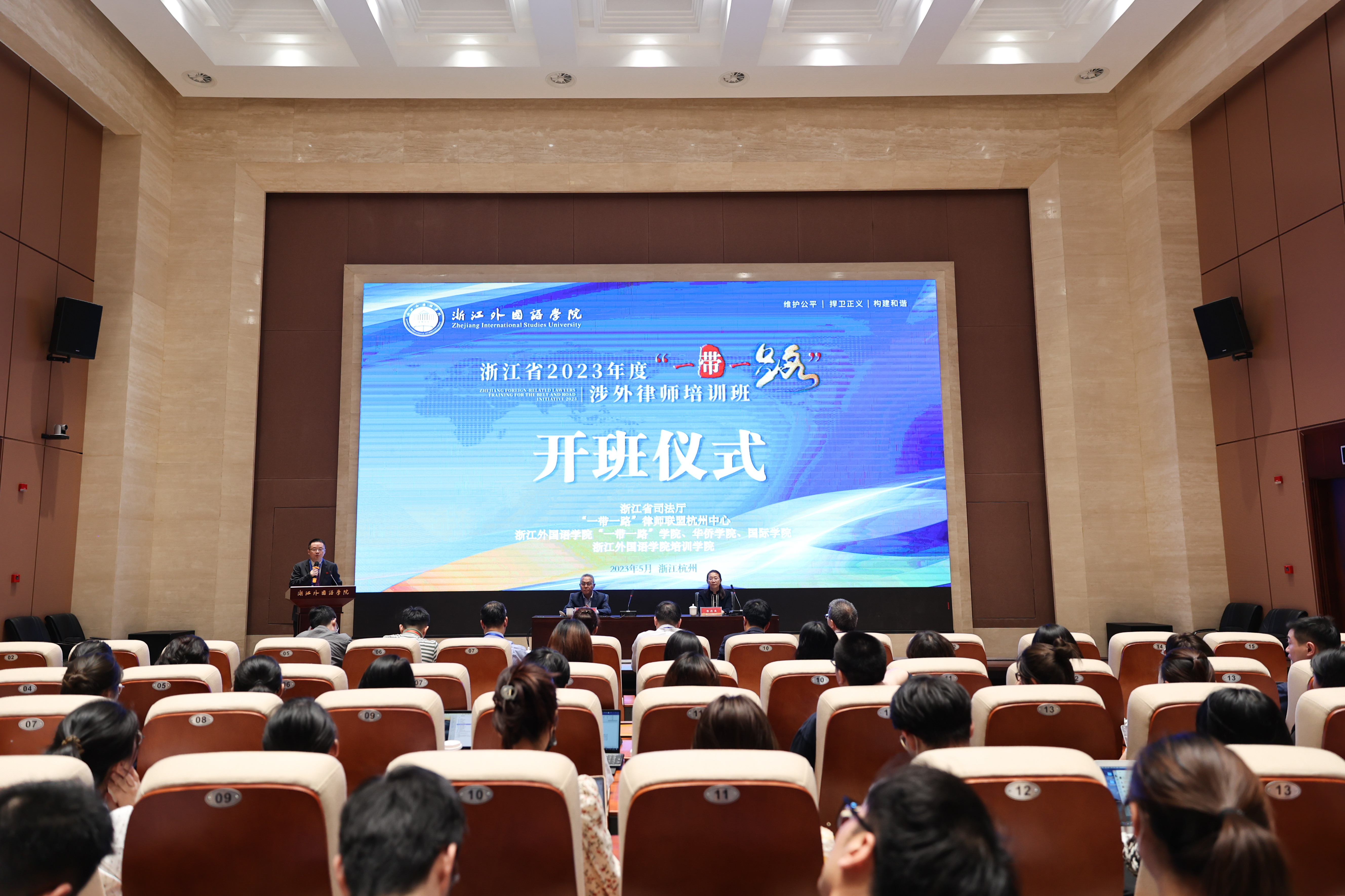 5月25日,浙江省2023年度“一带一路”涉外律师培训班开班仪式在浙江外国语学院举行。浙江外国语学院副校长柴改英出席并致欢迎辞。浙江省律师协会专职副会长、“一带一路”律师联盟杭州中心主任陈三联出席并讲话。本次培训由浙江省司法厅、“一带一路”律师联盟杭州中心主办,浙江外国语学院“一带一路”学院、华侨学院、国际学院和继教学院、培训学院承办。来自全省11个地市从事“一带一路”沿线国家和地区涉外法律服务业务的80余名优秀青年律师参加本次培训。浙外涉外法学青年教师、“一带一路”涉外法治人才培养创新实验班学生代表等参加开班仪式。