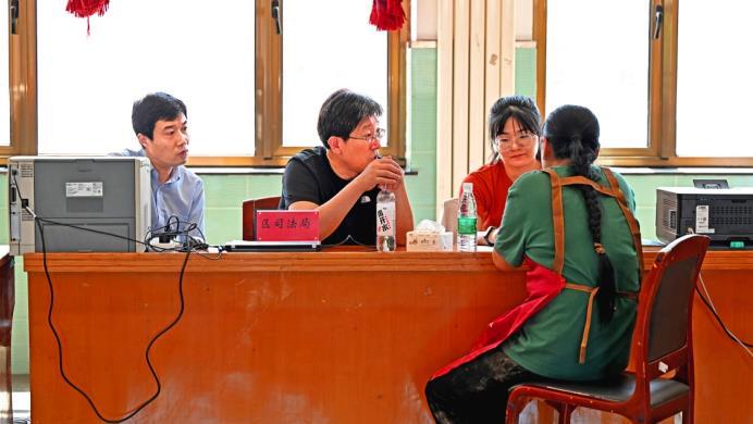 8月6日,北京市怀柔区司法局工作人员与律师一起走进琉璃庙镇,为受灾群众提供法律咨询服务。法治日报全媒体记者 杨晋峰 摄