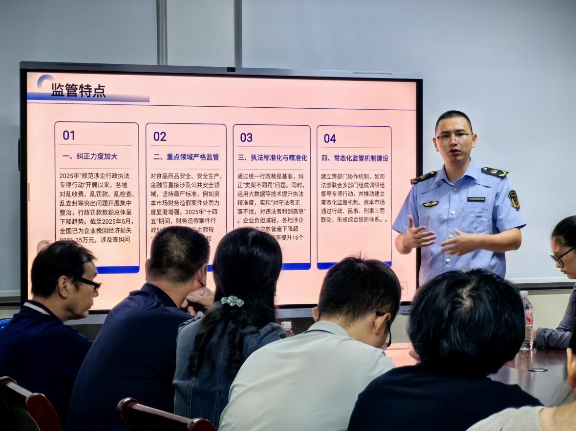 在面向镇商会成员的专题讲座中,王金华以《涉企处罚风险全解析》为主题,深入剖析了企业在安全生产、消防管理、环境保护、知识产权、产品质量、税务、建设项目等八大“高危雷区”的常见风险点,并通过某公司因未按规定进行安全培训教育导致事故发生被重罚、某企业因危废管理不规范面临高额罚款和整改压力等典型案例,对现场企业进行警示教育与宣传引导。