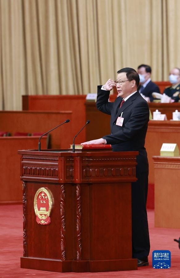 3月11日,十四届全国人大一次会议在北京人民大会堂举行第四次全体会议。应勇当选为中华人民共和国最高人民检察院检察长。这是应勇进行宪法宣誓。