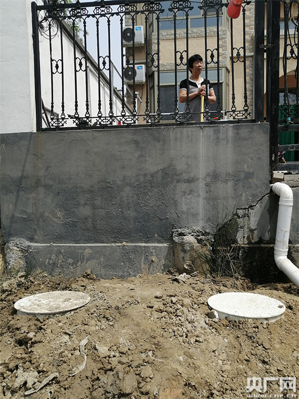 淀边居民家中产生的生活污水排入两个桶内,由专人收集处理。(央广记者 佟亚涛 摄)