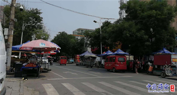 3、容城县县城金台西路、金容中街占道经营严重,道路两旁门店和小商贩在人行便道和非机动车道摆摊经营,还存在电动小三轮乱停乱行现象,影响来往行人、车辆通行。