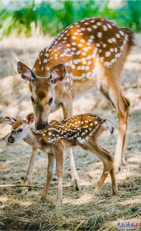 梅花鹿“安安”和“女儿”。中国雄安官网记者马梦迪 摄