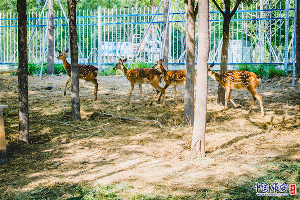 梅花鹿生活在一起,其乐融融。中国雄安官网记者马梦迪 摄
