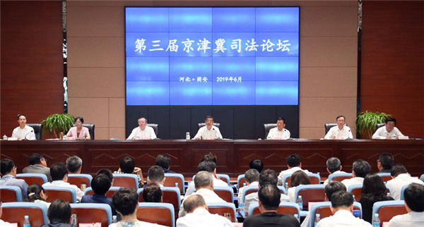 中国法院网讯 (孙航) 6月5日,第三届京津冀司法论坛在河北固安召开,最高人民法院党组书记、院长周强出席活动并讲话。周强强调,要坚持以习近平新时代中国特色社会主义思想为指导,不忘初心、牢记使命,坚持司法为民、公正司法,深化司法协作一体化建设,为京津冀协同发展和雄安新区规划建设提供有力司法服务和保障。