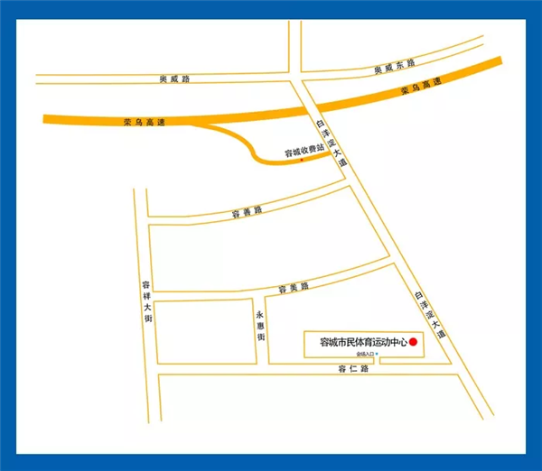 保定东火车站→会场(容城体育馆)43公里,车程40分钟。