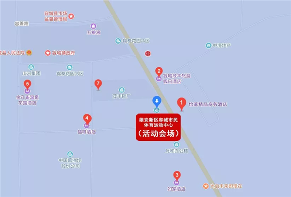 注:白洋淀火车站→会场(容城体育馆)5.4公里,车程20分钟;