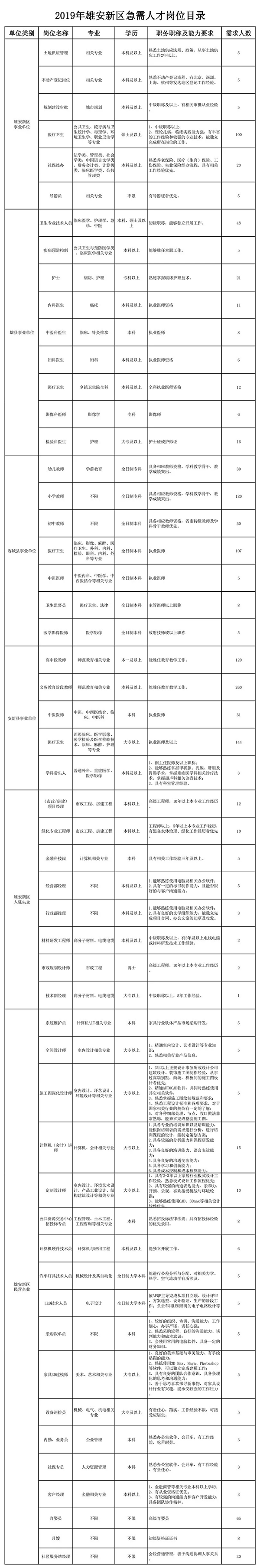 雄安新区用人单位需求信息
