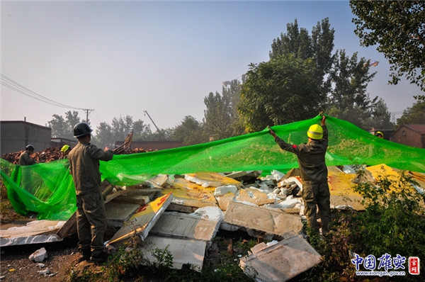 “雄安新区房屋拆除对施工过程中的环保要求很高,我们在施工前进行了充分学习和技术交底,并准备了多台雾炮车以及足够量的密目网,以达到抑制扬尘的要求。”现场施工负责人说,“虽然任务很艰巨,有很多问题是我们以前没有遇到过的,但这也是一次难得的‘绿色拆除’的学习机会,我们会加强该方面学习并为雄安新区建设作出应有贡献。”