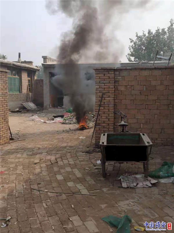 10月23日上午,雄县督查帮扶组在实地查看拆迁工程作业时发现,昝岗镇张马浒村一村民为获得铝制品,正在焚烧铝线外皮,现场黑烟现象明显。雄县督查帮扶组已责令雄县加强露天焚烧管控,加大执法巡查力度,清理着火隐患,加强露天焚烧问责力度,完善视频监控系统,形成“发现—处理”的快速反应机制,强化落实网格化监管责任。