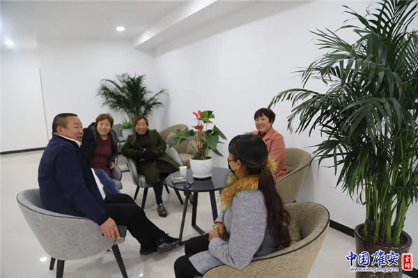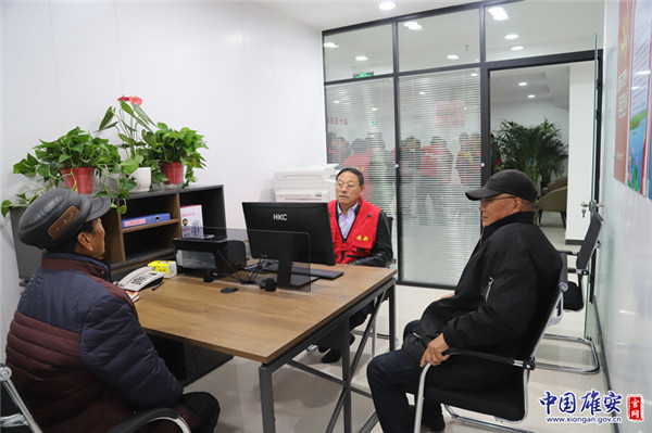 征迁群众之家的工作人员为征迁群众“答疑解惑”。中国雄安官网黄海 摄