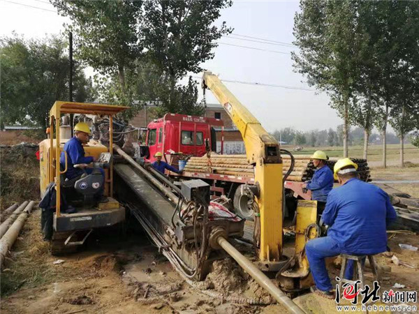 定向钻机将钻杆打入地下14米深处,钻杆一点点前行打出一条铺设天然气的通道……10月23日,记者来到容城县黑龙口村时,容城县新奥燃气有限公司工作人员正在加快推进“气代煤”工程建设。