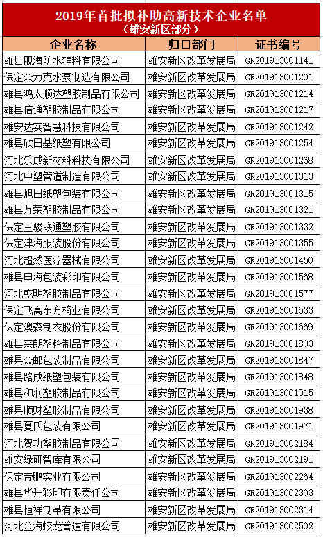 5月6日,河北省科学技术厅对2019年拟补助高新技术企业名单进行公示,其中,雄安新区29家企业入选。
