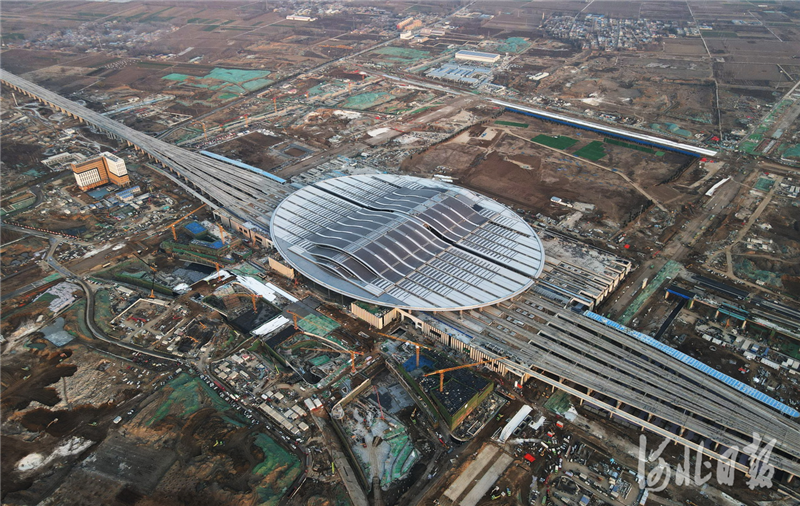 2020年11月30日拍摄的建设中的京雄城际铁路雄安站。(资料图)