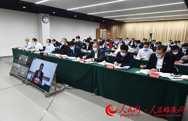 会议以广电网络视频会议形式召开,三县和雄安集团设分会场。新区党工委、管委会领导班子成员、省委第十二督查组负责同志、新区各部门主要负责同志,新区建设指挥部副总指挥、各片区指挥部指挥长,中国雄安集团领导班子成员在主会场出席会议。三县副县级以上干部,重点部门主要负责人,各乡镇党委书记,雄安集团中层干部在分会场参加会议。
