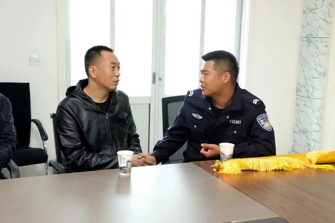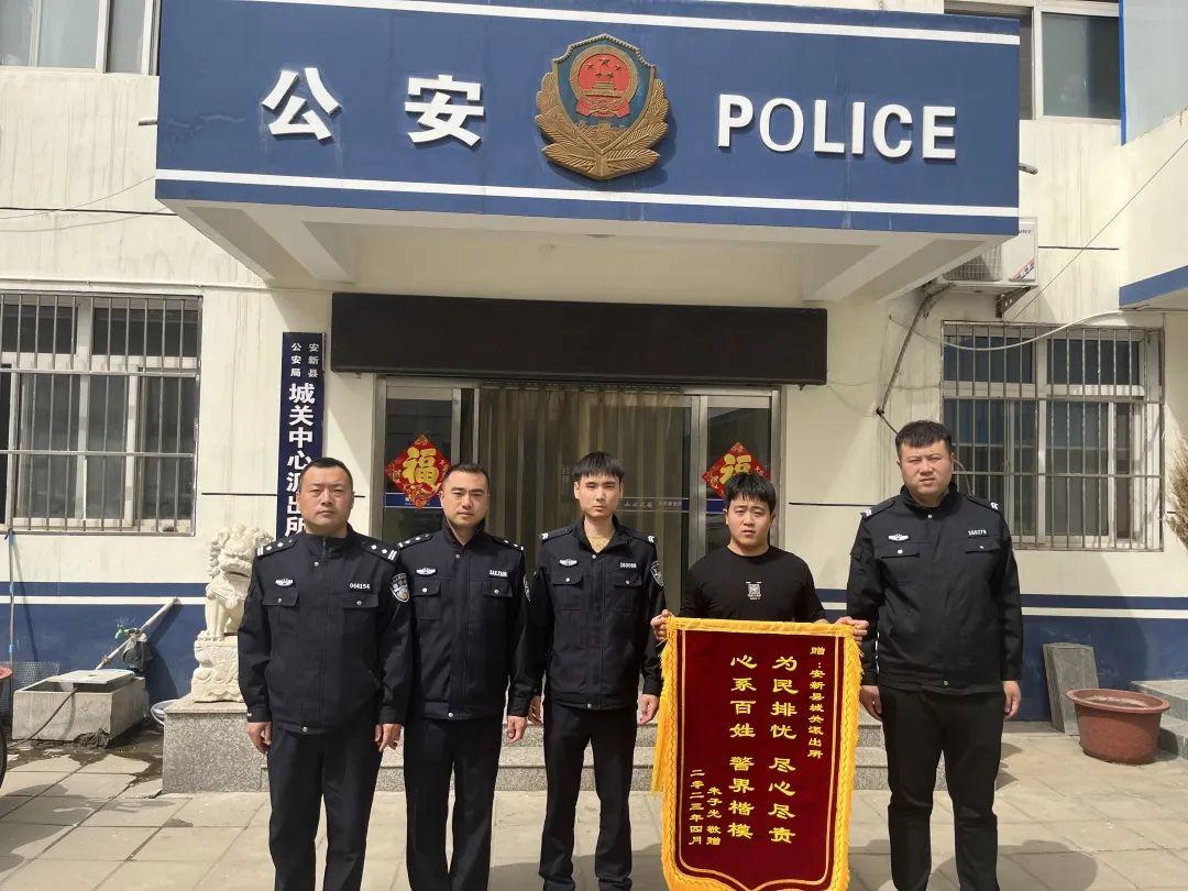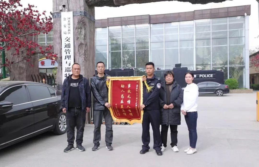4月11日上午,武先生来到雄安新区公安局交巡特支队,将一面写有“事故无情人有情 助人为乐显真情”字样的锦旗送到留置保障大队队员刘冲手中。