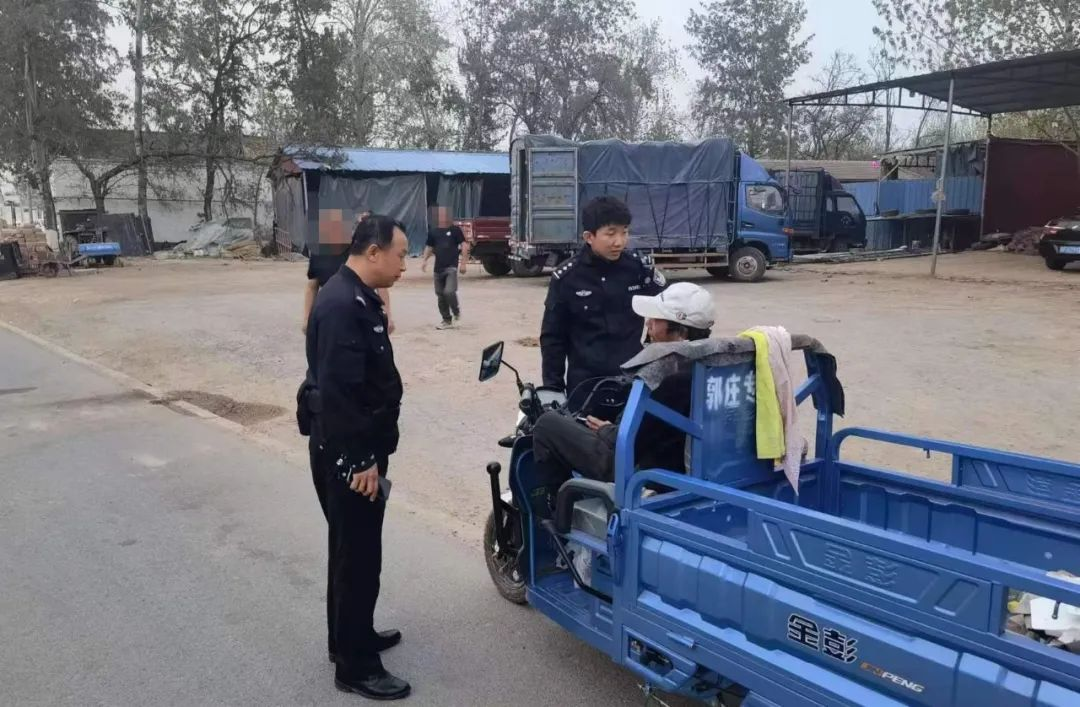 4月10日19时许,雄县公安局双堂派出所民警在辖区巡逻时,发现路中央停着一辆电动三轮车,车上有一位六十岁左右的老人,过往的车辆纷纷绕行,民警立即停车,将老人与车辆带到了安全地带。