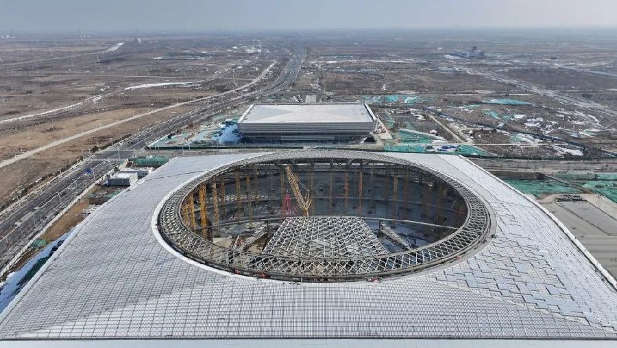 雄安体育中心建设现场(2月7日摄,无人机照片)。新华社记者牟宇 摄