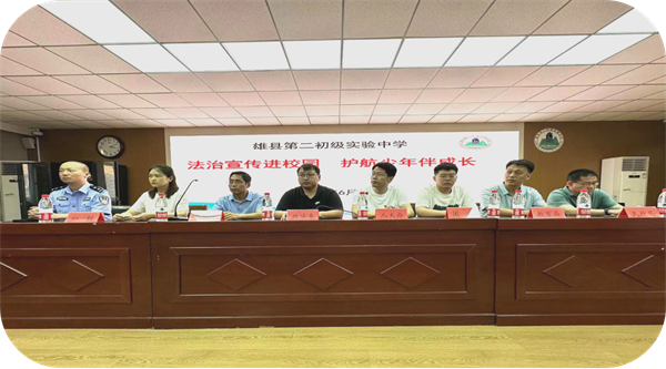 按照“八五”普法工作要求,河北省保定市雄县扎实开展“关爱花朵计划”三年行动,持续加大“法治进校园”普法宣传教育力度,厚植法治土壤,“护苗”茁壮成长,不断增强在校学生的法治观念和自我保护能力。2024年6月5日,雄县县委政法委联合县人大办、县政协办、团县委、县妇联、县公安局、县教育局、县民政局等部门在雄县第二初级实验中学开展“法治宣传进校园,护航少年伴成长”普法宣传。活动由校长郑通同志主持,有关部门领导出席并讲话,部分老师、学生代表参加了活动。