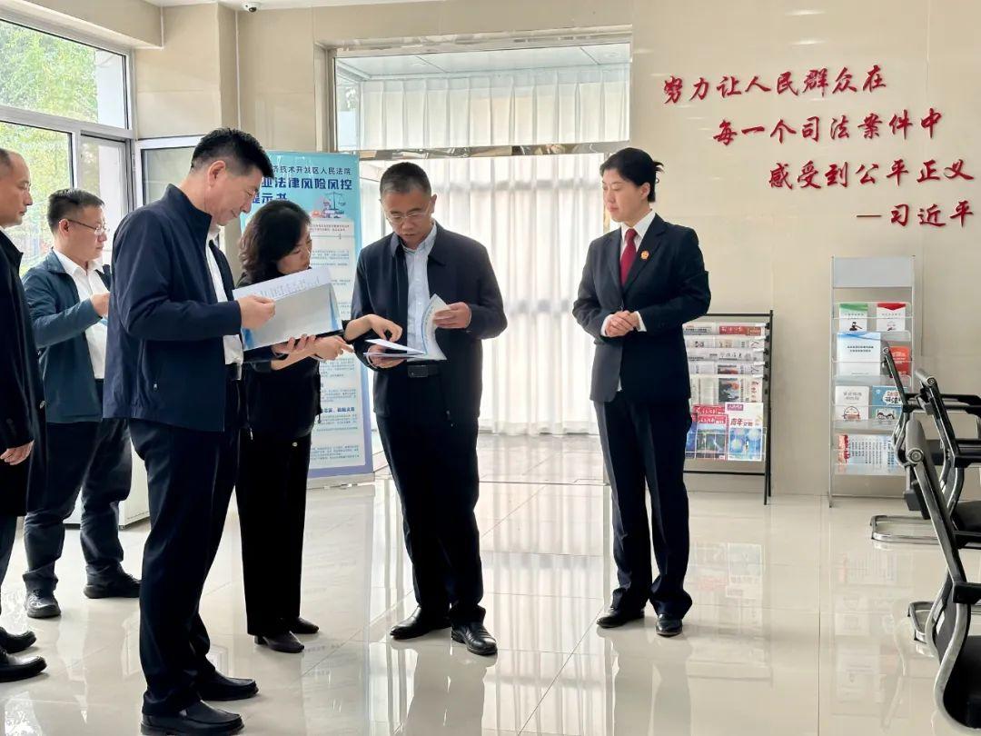 在廊坊经济技术开发区,石磊一行走访了润泽科技公司,深入了解大数据等新业态企业发展现状和司法需求。随后,实地参观了廊坊经济技术开发区人民法院诉讼服务中心、文化长廊、院史馆等场所,全面了解基层法院的基础设施建设及优化法治营商环境等工作开展情况。