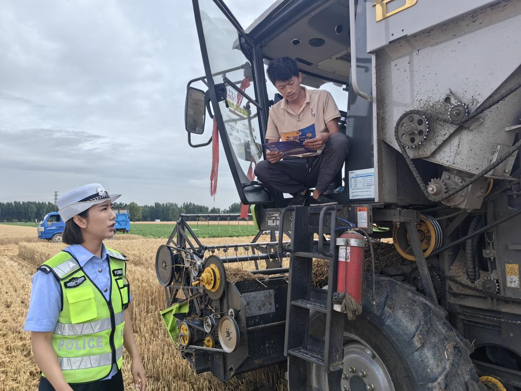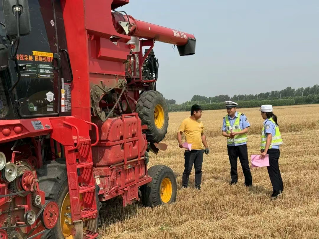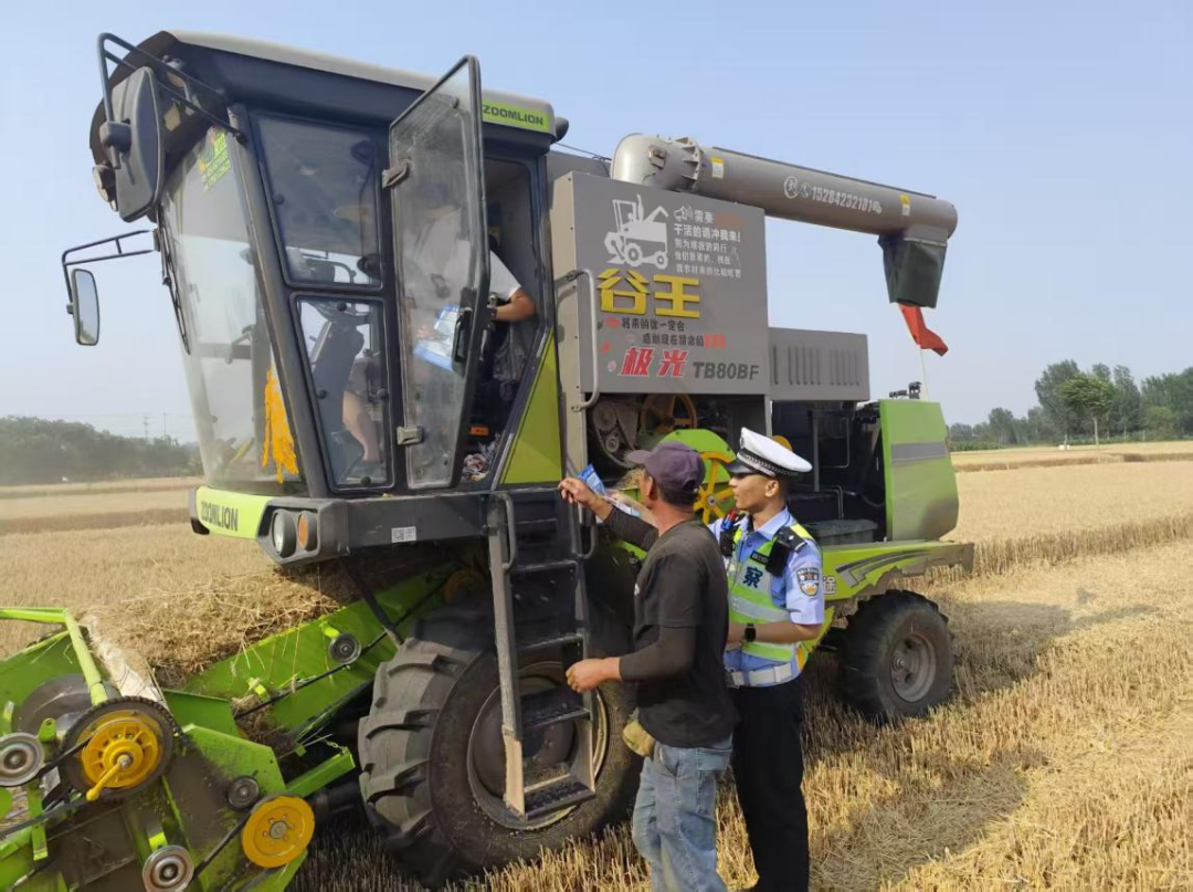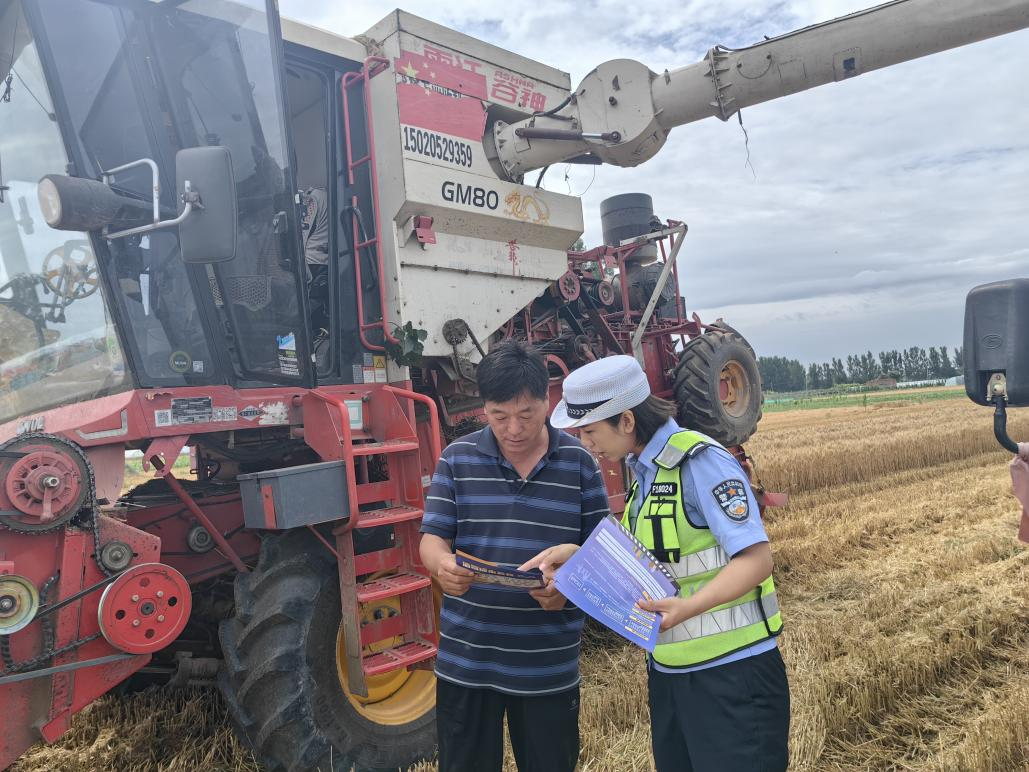 收割机司机沈大哥接过宣传单页,擦了把额头的汗水,深有感触地说:“张警官提醒得太对了,我前两天刷视频还看到,因为收割机刹车失灵出了事故,不仅耽误了农时,还造成了人员伤亡。我们一定牢记安全第一。"