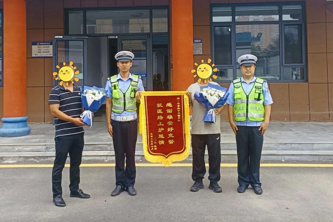 锦旗上的金线在阳光下闪烁,映照着交警制服上的反光条。这抹流动的亮色,始终守护在城市的动脉上,用一次次挺身而出,践行着“平安守护”的承诺。