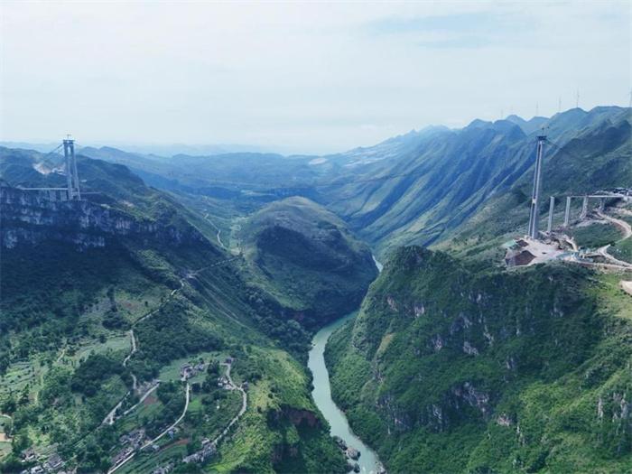 据了解,六安高速花江峡谷大桥是贵州省桥旅融合示范性项目工程,大桥主桥跨径1420米,桥面至水面高度625米,建成后,花江峡谷大桥不仅主桥跨径居山区桥梁跨径世界第一,更将成为新的山区峡谷世界第一高桥。同时,将通过建设“桥梁观光+桥梁运动体验+旅游服务”为一体的桥旅融合综合体,努力打造贵州桥旅融合3.0样板。