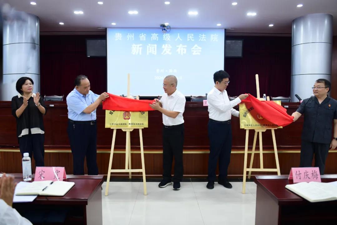 9月26日,贵州高院在毕节市黔西法院召开新闻发布会,发布贵州法院知识产权审判护航乡村振兴典型案(事)例,并举行“七星关区人民法院 黔西市人民法院知识产权司法保护联系点暨苗绣行业知识产权司法保护巡回审判点”揭牌仪式。