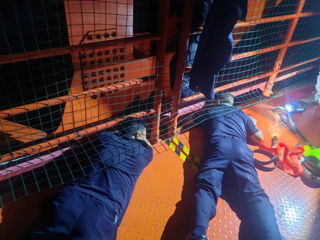 10月20日1时51分,消防救援人员抵达现场,经过10多分钟的救援,在现场多部门人员的合力之下,该男子被成功救出并转移至安全区域。
