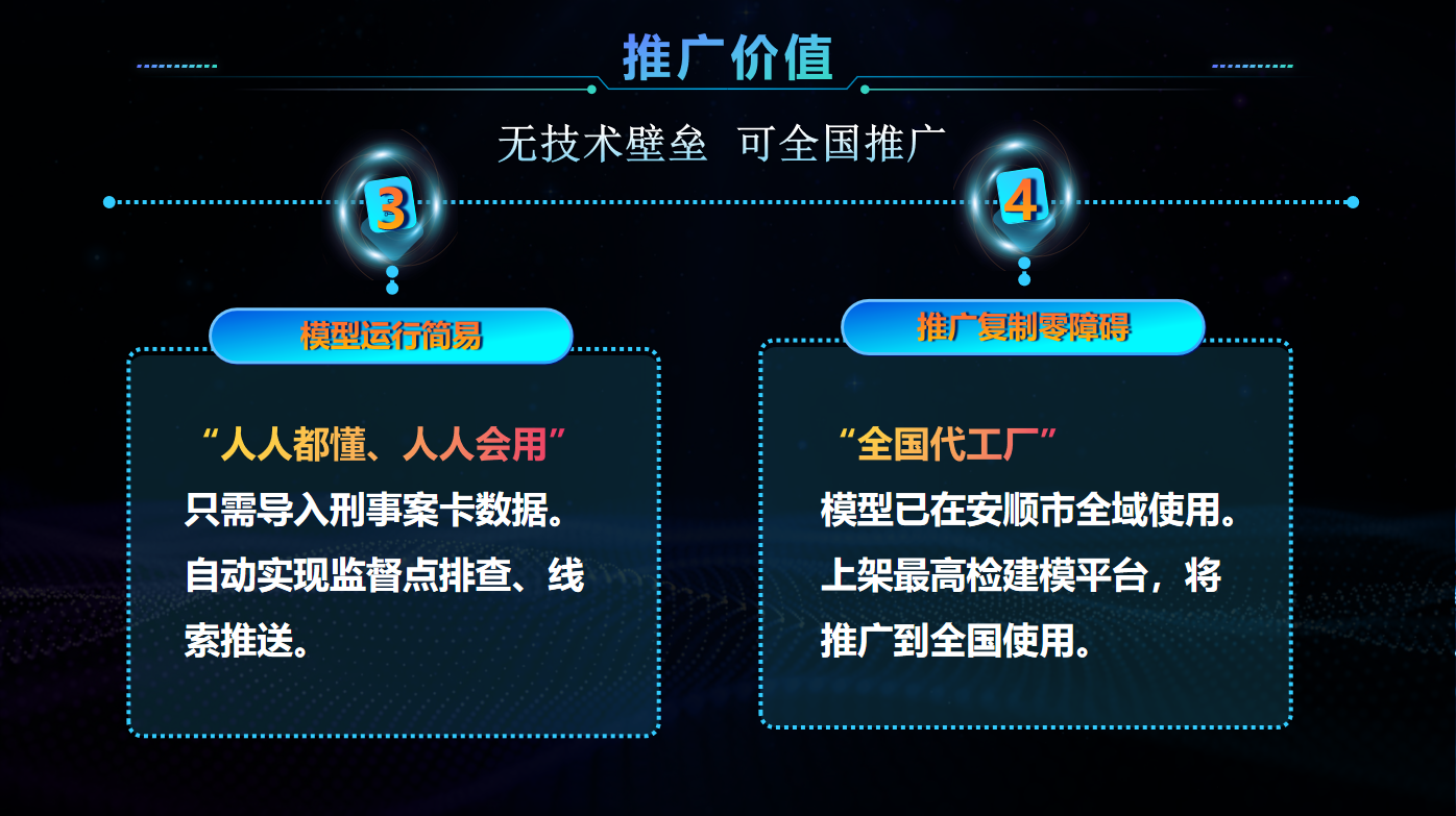 因数据来源方便、推送线索精准度达65%、监督成效显著,该模型建成两个月内,已从全省164个模型中脱颖而出,成功上架最高检建模平台,将在全国范围内推广应用。