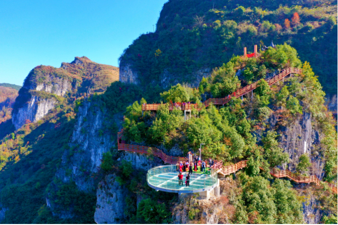 “新增加的悬崖栈道、玻璃吊桥、天麻种植体验……”很值得来体验,2020年国庆节,停摆了5年的洋山河景区,以全新的面貌开门迎客,至此火爆不断,成为网红打卡地。
