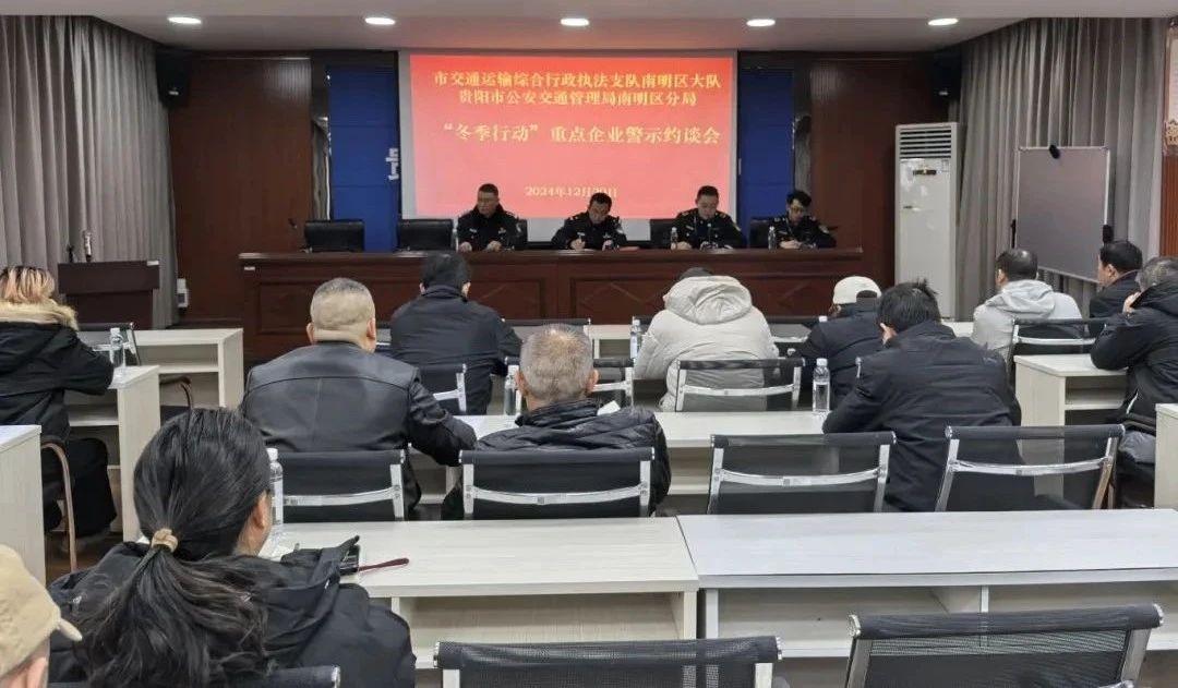 当前正值隆冬时节,为更好地应对冬季雨雪降温恶劣天气,最大限度保障人民群众生命财产安全,12月20日,贵阳市公安交通管理局南明区分局联合交通运输综合执法部门组织“两客一危一货”企业负责人开展警示约谈会,通报今年以来辖区内发生的交通事故典型案例,并结合冬季出行特点分析研判今冬交通安全隐患情况,督促提醒企业严格管理车辆和驾驶人,常态化对车辆安全设施进行排查,坚决杜绝车辆带“病”上路;定期对驾驶人开展交通安全培训,提升驾驶人安全意识。