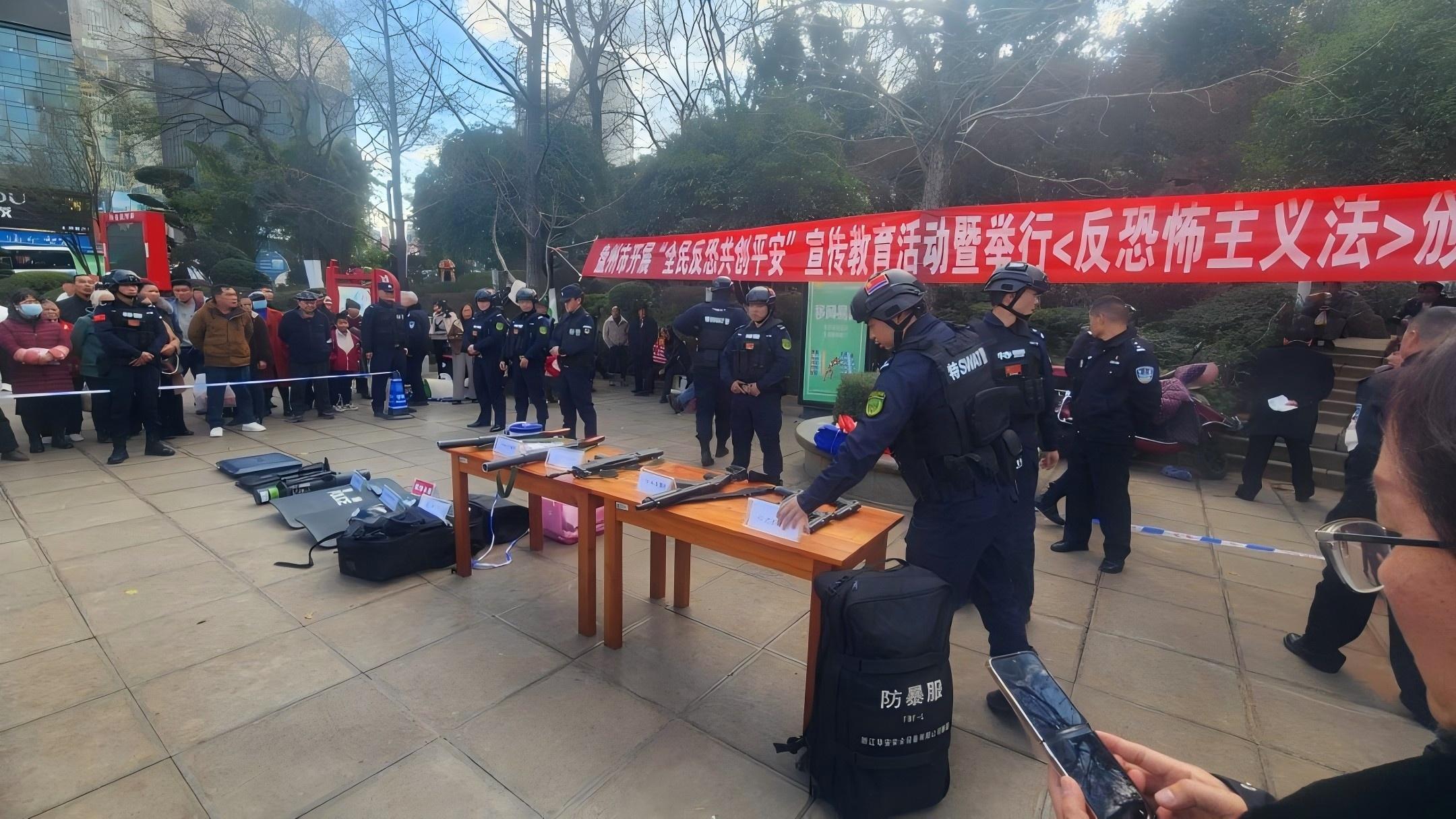 12月27日,《中华人民共和国反恐怖主义法》颁布9周年之际,为切实增强广大群众的反恐防恐意识和应对恐怖袭击的能力,贵州省六盘水市公安局反恐支队在中心城区举行六盘水市“反恐怖主义法颁布实施九周年”宣传活动。