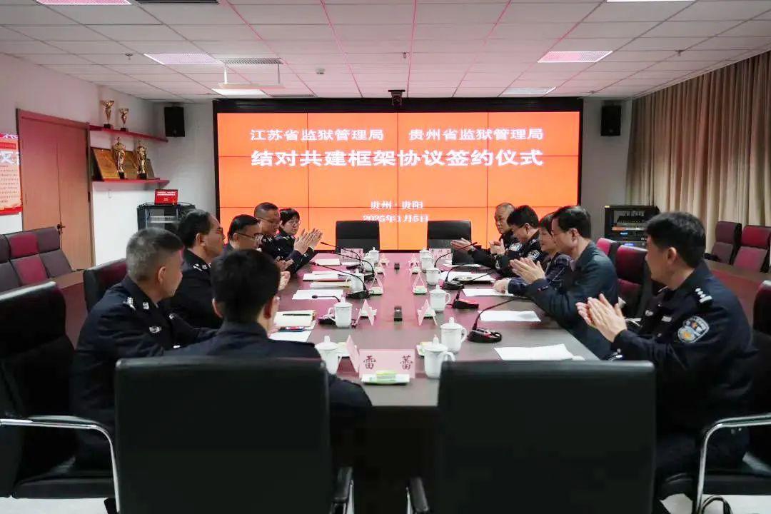 1月5日,贵州省监狱管理局与江苏省监狱管理局在贵阳签订结对共建框架协议。签约仪式上,双方共话省域共建合作,展望未来两省监狱发展。