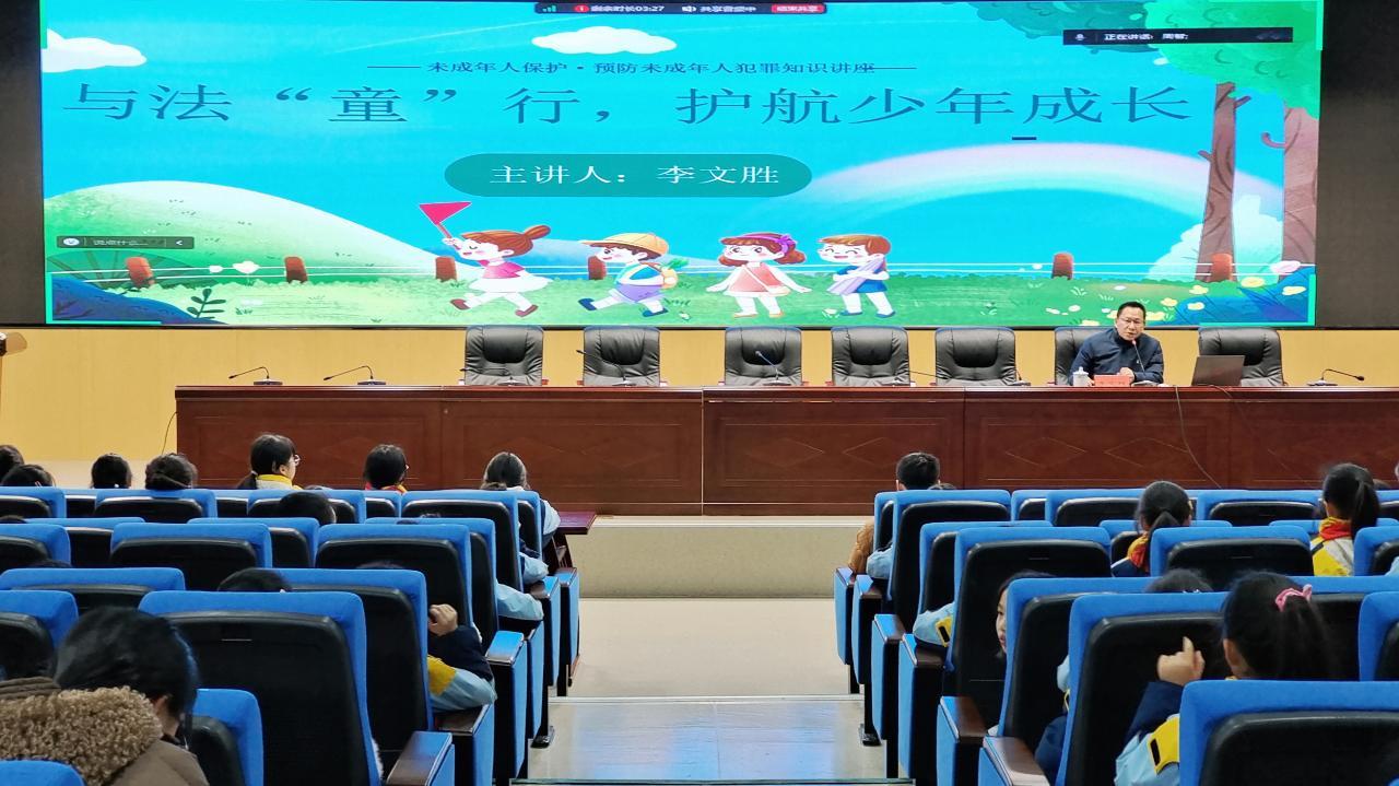 法治副校长李文胜以“与法‘童’行,护航少年成长”为主题,结合小学生的认知特点,重点讲解了《中华人民共和国未成年人保护法》《中华人民共和国预防未成年人犯罪法》,深入剖析未成年人犯罪的常见类型及其背后的原因,并向学生们阐述了犯罪行为对个人、家庭和社会造成的严重危害。