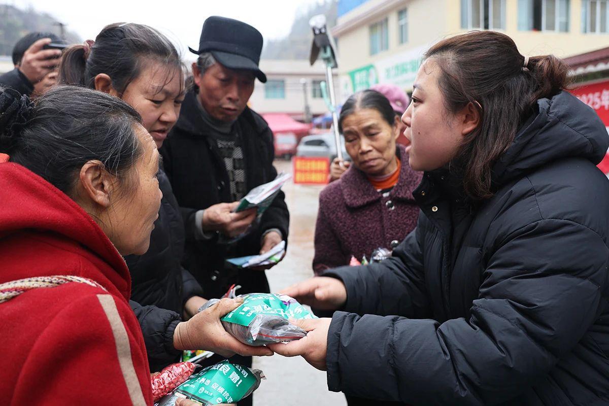 近日,来到普定县穿洞街道龙新村,一场别开生面的安顺市2025年“放心农资下乡进村”宣传活动正在开展,市农业农村局联合普定县农业农村局邀请6家诚信经营企业向前来赶集的村民免费发放种子、肥料、农药及宣传手册,现场排起长龙,热火朝天。