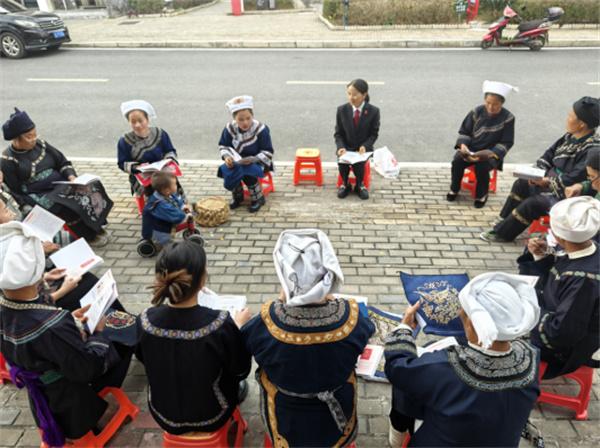“重婚有违民法典,包办买卖不对路,朝三暮四不可取,养老育儿是义务。”绣娘们创作的普法水歌生动有趣。在雪花湖社区“绣娘之家”,绣娘们坐在板凳上一边刺绣一边兴致勃勃地唱着。韦应丽介绍说:“在水乡,群众爱唱歌但识字不多,学习法律有困难。所以我们的绣娘不仅要成为矛盾纠纷调解的行家,更要成为合格的普法员。”绣娘们将国家法律法规和政策编排成“调解歌”“新时代女性歌”“孝老爱亲歌”“禁毒防邪歌”等少数民族山歌,唱给群众听,让大家一听就懂,多听还能跟着哼唱,对法律知识更感兴趣,真正做到听得懂、记得住、用得上。