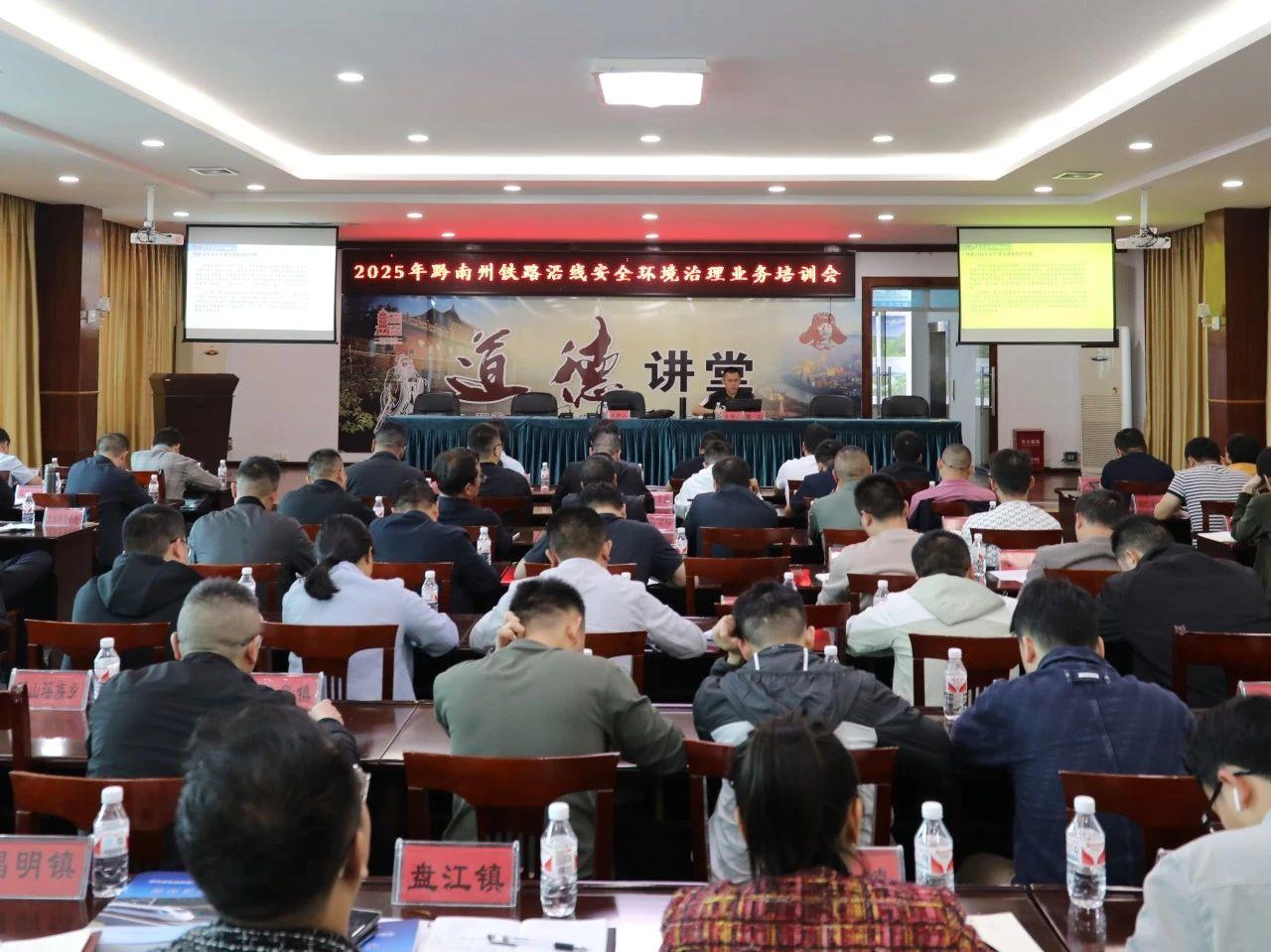 贵州省铁航中心相关领导,铁路沿线各县(市)铁路联席办、涉铁乡镇(街道)分管负责人,贵阳车站等铁路运营单位,以及州铁路沿线安全环境治理联席会议部分成员单位负责同志共同参加此次培训会,各方将以此次培训为新起点,为黔南州铁路沿线安全保驾护航。