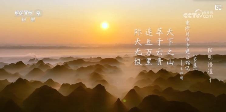 由贵州省委宣传部策划推出的纪录片《阳明悟道》第一集《山水引路》于3月26日中央广播电视总台纪录频道(CCTV-9)播出,讲述了王阳明从浙江启蒙到贵州求索跨越万水千山,在逆境中将思想磨砺升华,开启心学新纪元的故事。