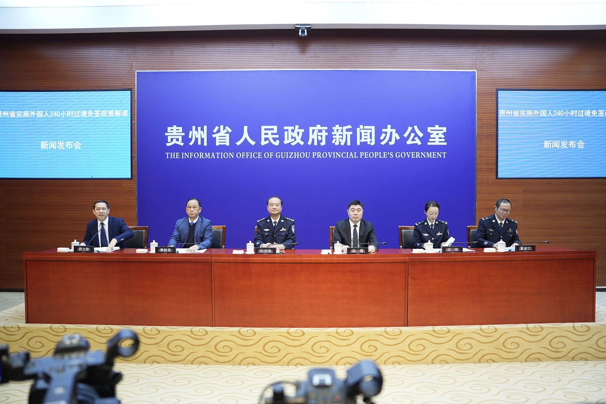 3月28日,贵州省政府新闻办召开贵州省实施外国人240小时过境免签政策解读新闻发布会。
