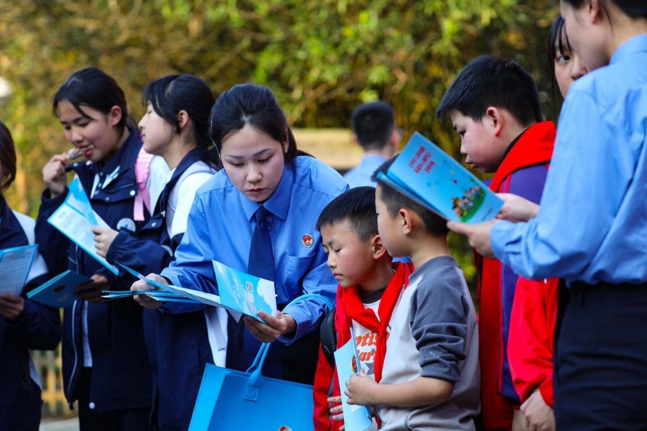近日,贵州省黔西市检察院干警深入辖区水西公园开展法治宣传活动。活动中,检察干警向放学回家的学生及过往游客发放《未成年人自我保护攻略》等法治宣传资料,并讲解防范校园欺凌等知识,鼓励学生们勇敢向校园欺凌说“不”。