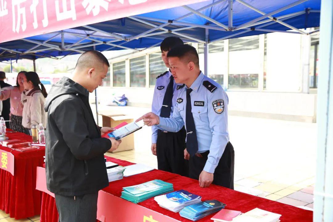 4月15日,在六盘水市国安委组织下,六盘水市公安机关组织民警到广场、社区等人员密集场所开展主题宣传活动,民警通过多种形式向过往群众宣传反邪教和公民预防恐怖活动行为指引等知识,向群众详细阐释国家安全观的基本内涵,结合典型案例宣传法律知识,引导大家采用合法途径化解矛盾纠纷,提醒注意保护个人信息,防范网络电信诈骗。