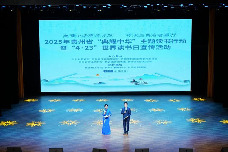 近日,由贵州省教育厅、文化和旅游厅、民族宗教事务委员会、农业农村厅、共青团贵州省委、省妇女联合会联合主办,贵州理工学院、贵州广播电视台、省图书馆共同承办的“典耀中华”主题读书行动暨“4·23”世界读书日宣传活动在贵州理工学院隆重举行。活动以“传承经典 启智黔行”为主题,旨在深化全民阅读氛围,弘扬中华优秀传统文化,助力乡村振兴与高质量发展。