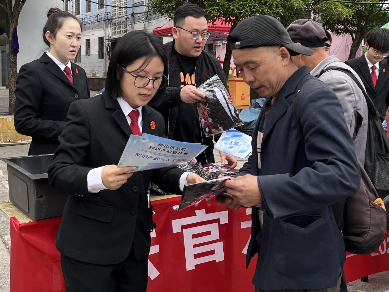 近日,贵州省六盘水市钟山区人民法院综合审判庭开展知识产权宣传周系列活动,紧扣“法官走百企,知产进千户”主题,组织干警走进“居然之家”、双水汽贸城、荷城小商品市场三大商圈,通过“一企一策普法、一户一档答疑”,为112家商户定制知识产权保护方案,覆盖消费者及从业人员近千人,将司法服务精准送达基层治理“神经末梢”。